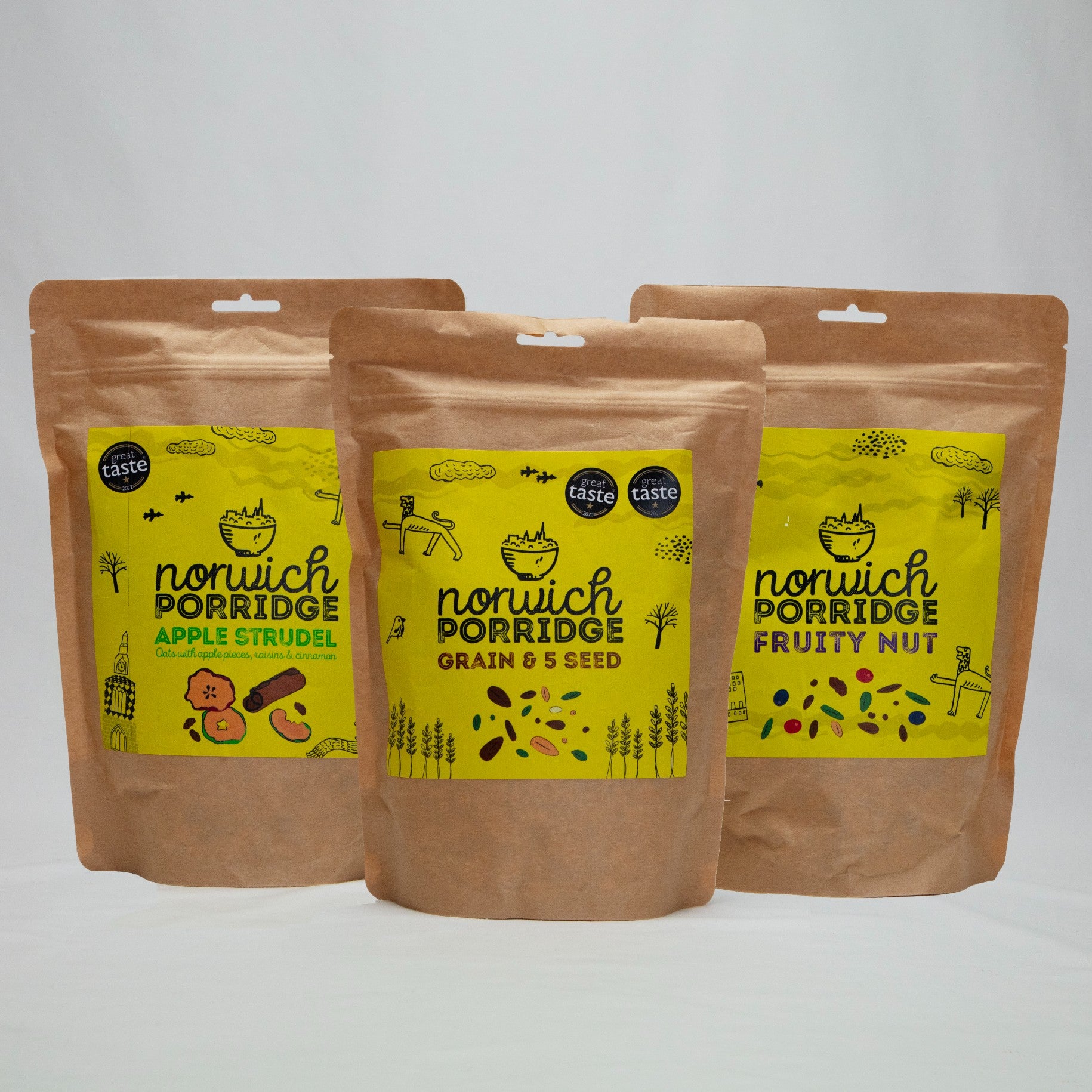 Three of our tastiest porridge mixes in one value bundle. Get a 500g bag of Fruity Nut porridge along with our our award-winning Grain & 5 Seed and Apple Strudel for a bundle-saving price.